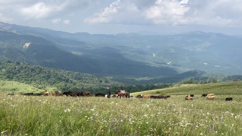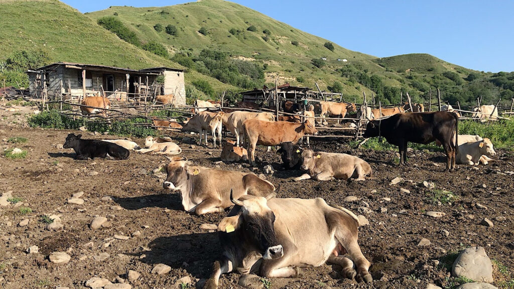 After the breakup of the Soviet Union in the 1990s, Georgia’s large scale collective farms were broken up and villagers were each allocated 1.5 acres – many of whom now produce vegetables, honey and dairy for local markets. Their livestock graze freely whether in the lowland villages, open savanna grasslands or rich summer mountain pastures.