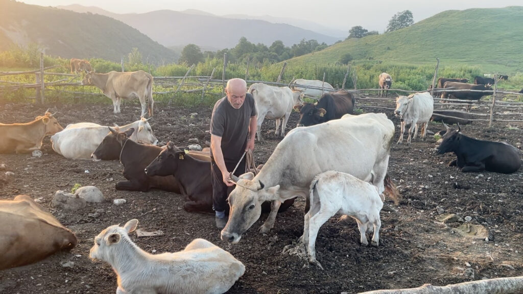 Though worried about the long term viability of grazing the mountain pastures, Gia and his team relish their summers in the mountain shack where they raise calves for beef and make heritage cheese and yogurt to sell in the markets in the villages below.